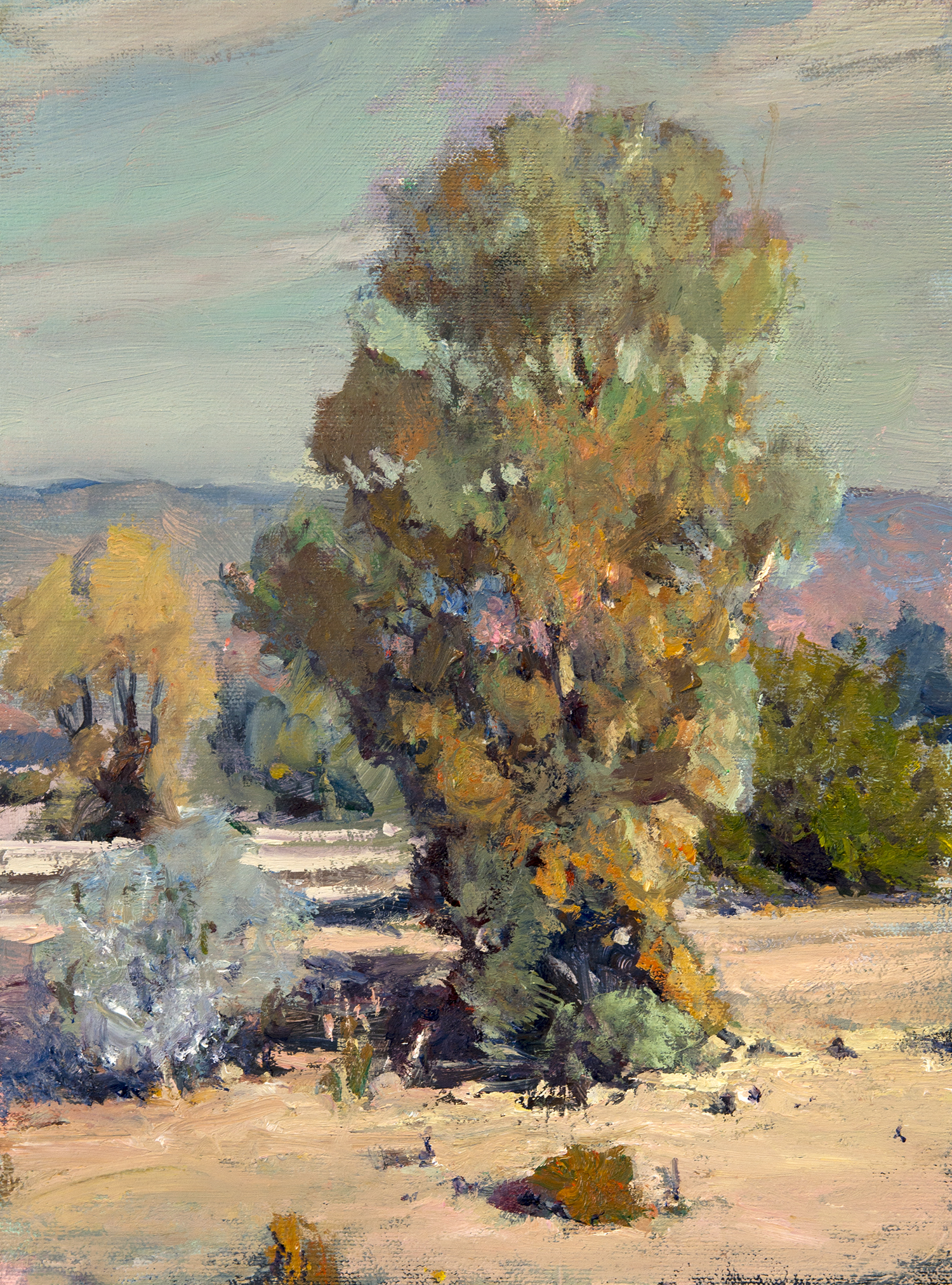 Terry Masters comes by his Smoke Tree School credentials via 50 years of walking the washes and studying early painters. An award-winning plein air painter, Masters is a California Art Club signature artist. He frequently leads Desert Art Center and California Art Club paint-outs in Araby Wash. He also paints the trees at Smoke Tree Ranch, and by the roadside wherever he finds one.