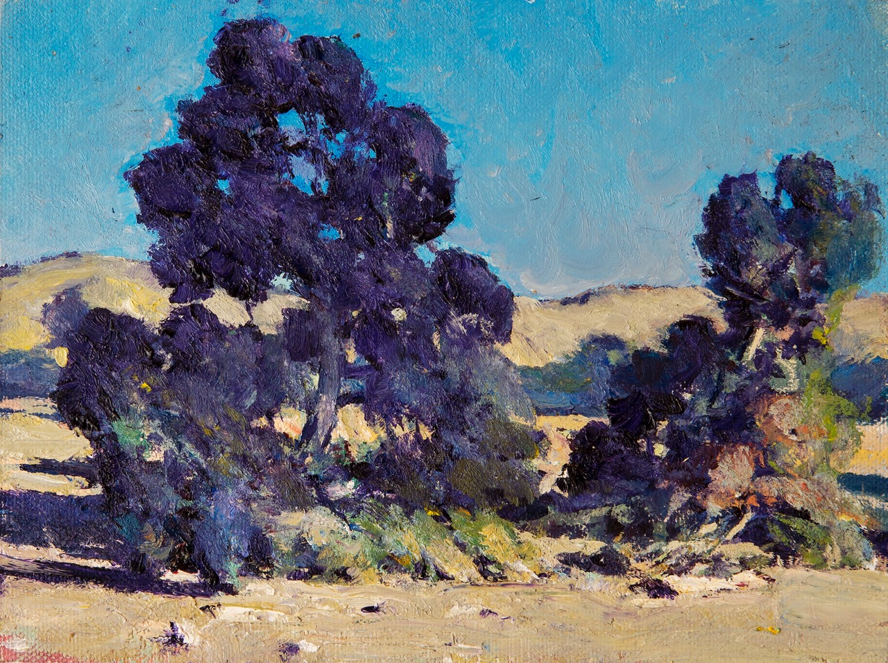 The owner of the Desert Painter Studio Gallery on Palm Canyon Drive, he tells his students that smoke trees are the hardest tree to paint. “They don’t have hard edges. They have nebulous shapes. One color shifts into the next color.”
