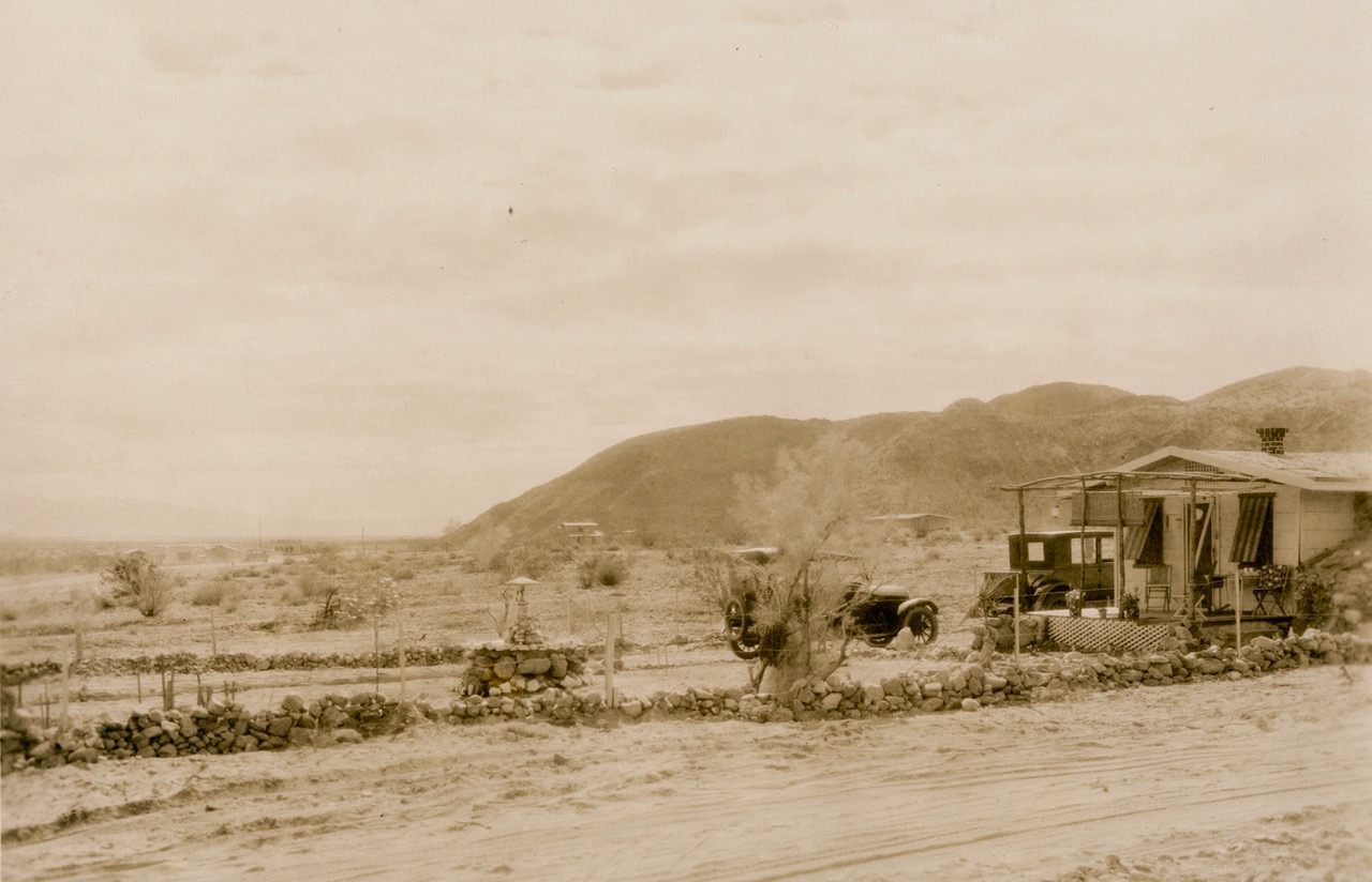 A hiker surveys Cathedral City village in 1940. The photographs of Cathedral City in Agnes Pelton’s era are from the Robert Hillery Collection of the Cathedral City Historical Society. The late Bob Hillery was a friend of Agnes Pelton’s when he was a boy.
