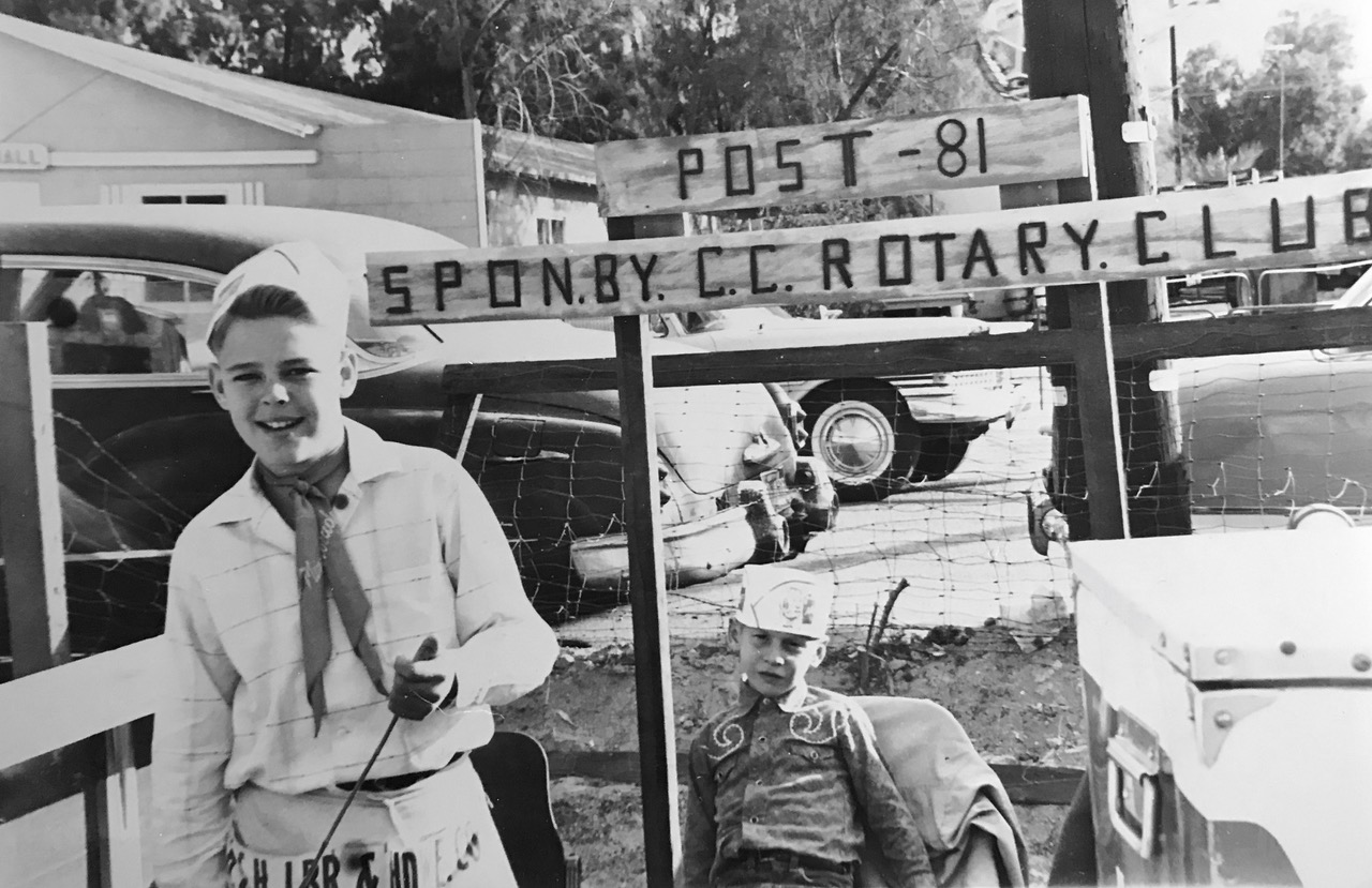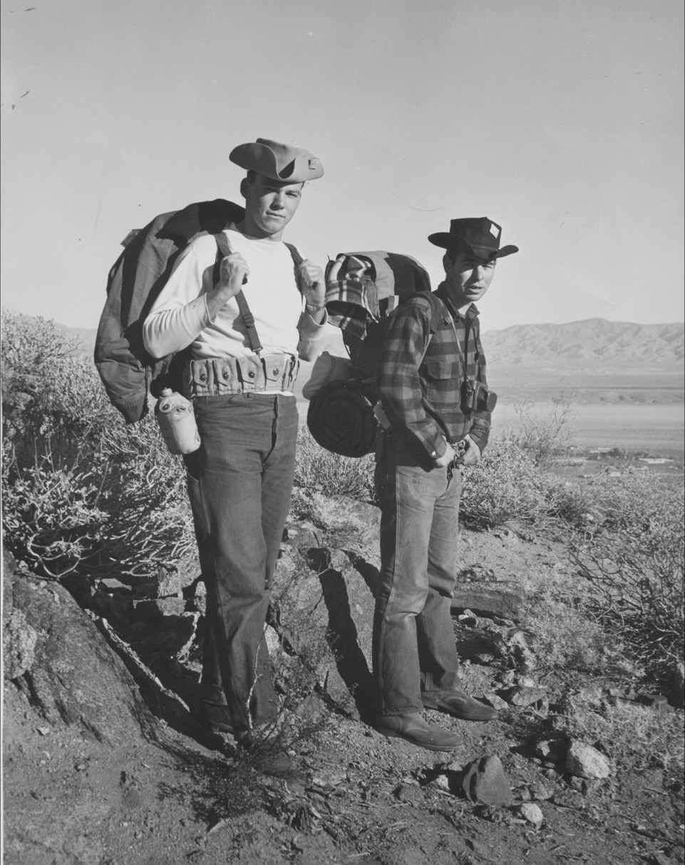 Cathedral City’s first elected mayor, Bob Hillery, at right hiking with Bill Carey in the hills above town. Bob was also the very first Desert Sun paperboy.