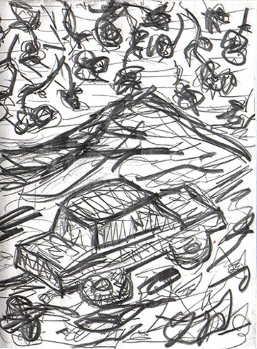 Julio Ruiz drawing of Mt. Signal. Ruiz drew this on a napkin while having lunch with Bibiana Padilla Maltos.