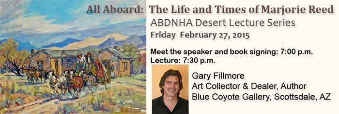 On February 27th, 2015, Gary’s evening lecture will cover Marjorie Reed’s life and work from her early childhood in Los Angeles–she was a prodigy who worked as a freelance graphic artist beginning at the age of 14–through her later years spent in the Anza-Borrego desert.