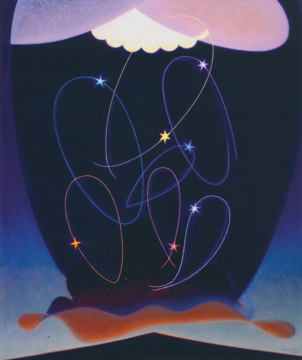 Agnes Pelton, Orbits. The Oakland Museum. Gift of Concours d’Antiques, Art Guild, The Oakland Museum Association. On view in the Phoenix Art Museum exhibition Desert Transcendentalist through September 8, 2019. The exhibition then travels to Santa Fe, New York and Palm Springs.