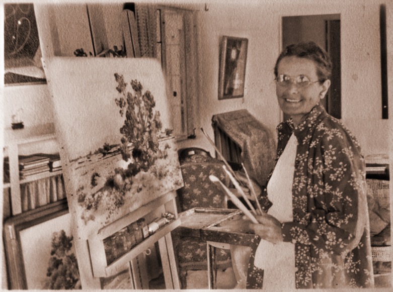A rare image of Agnes Pelton smiling, in her Cathedral City home, courtesy of the Agnes Pelton Society