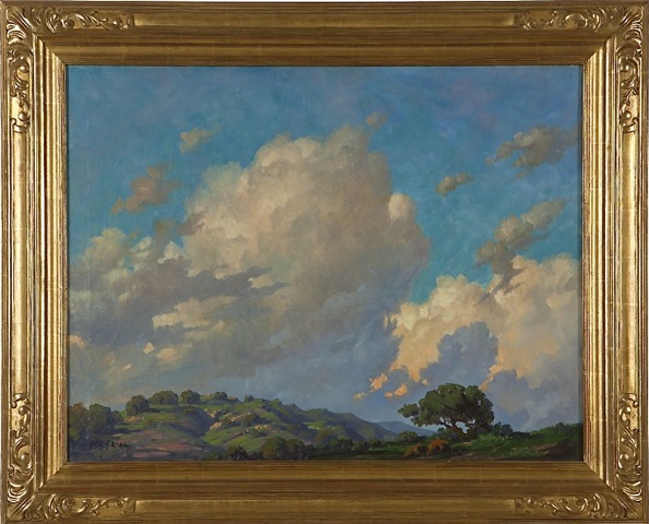 The next challenge is in staying calm. The room can suddenly come to life when an anticipated painting comes up for bid. One of the stars of the John Moran show was Paul Grimm’s California Clouds. From a private collection in Orange County, the 28″ x 36″ painting sold for a record auction price of $25,000 – far above the suggested price range of $7,000 – $9,000.