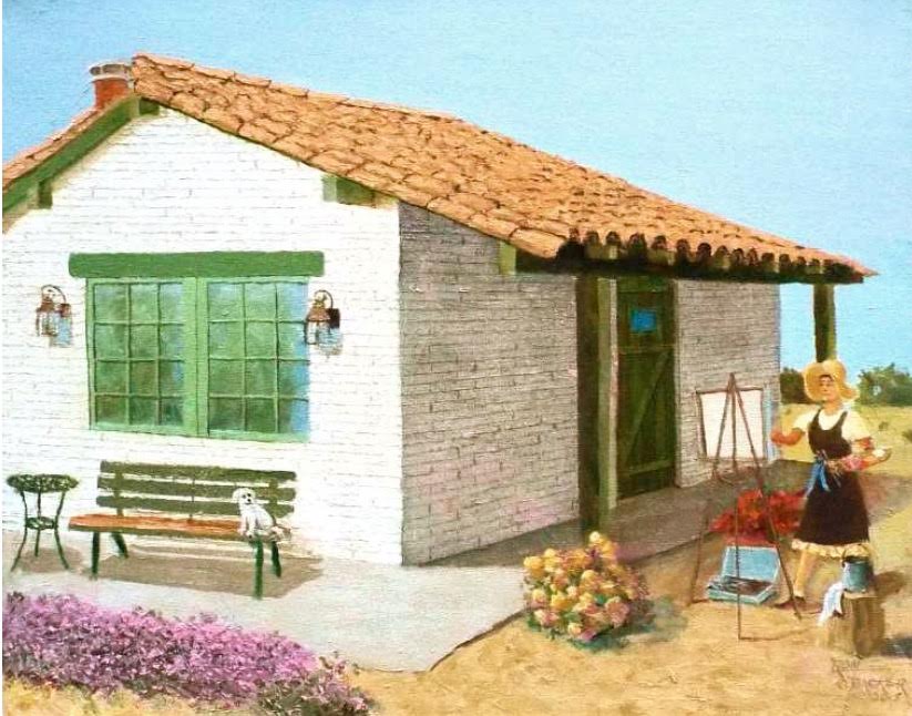 Our favorite desert historical artist, Ronald Backer (formerly of South Dakota), is at work discovering the Valley’s secrets and painting them at the same time. He recently completed a new painting of the adobe home of 1920s artist Frances Nugent. The home still stands in the La Quinta Cove.
