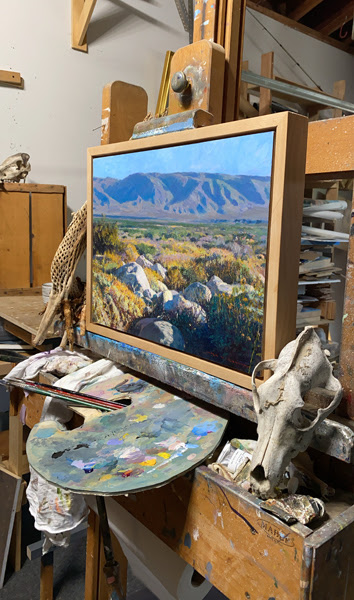 There’s an ancient, dependable rhythm to desert painting that endures even in a pandemic–walking, looking, sketching, walking some more. Here’s what some of our local heroes have been up to: