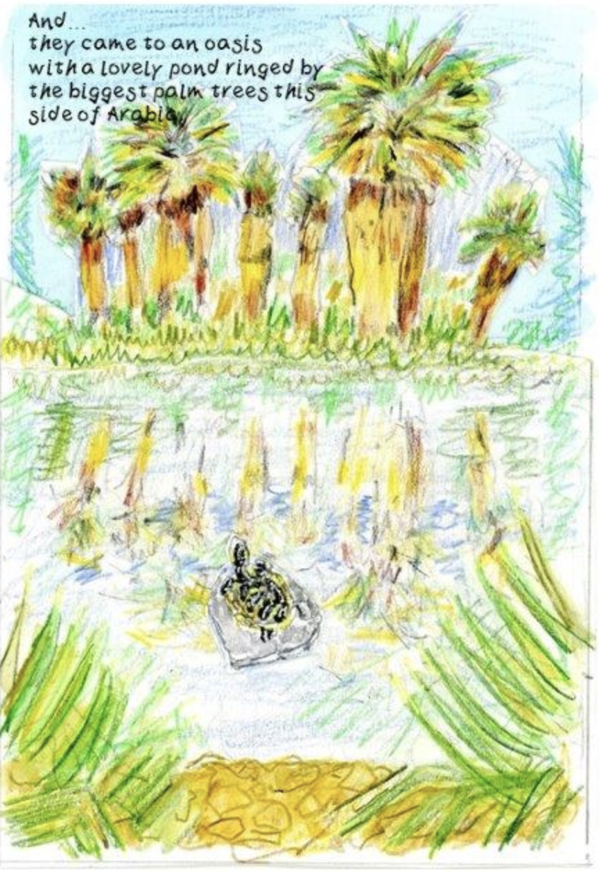 When a fox named Fresno encounters three border-crossing foxes from Mexico, they all wind up partying at a palm oasis–in a series of enchanting illustrations by British-born artist Anthony W. Parr. “A fox knows no borders, just how to have a good time in the desert,” proclaims this parable, available now on Amazon in English and Spanish.