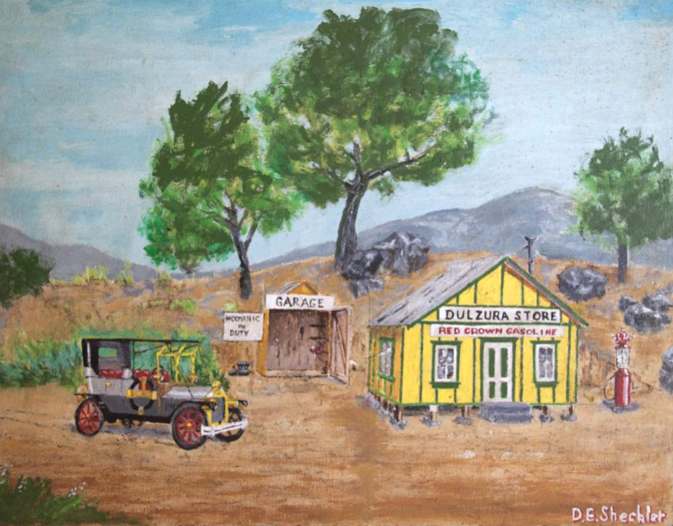 Both Hazel and her son Donald (Caroline’s husband) exhibited paintings at the California-Pacific International Exposition at Balboa Park in 1935. Donald Sheckler died in 2004 and most of his paintings—aside from a few on Caroline’s kitchen wall–have been scattered and lost. In a rural community, artwork gets passed around to neighbors the same as sugar and hay. Given the demands of ranch life, many of the paintings on loan never returned.
