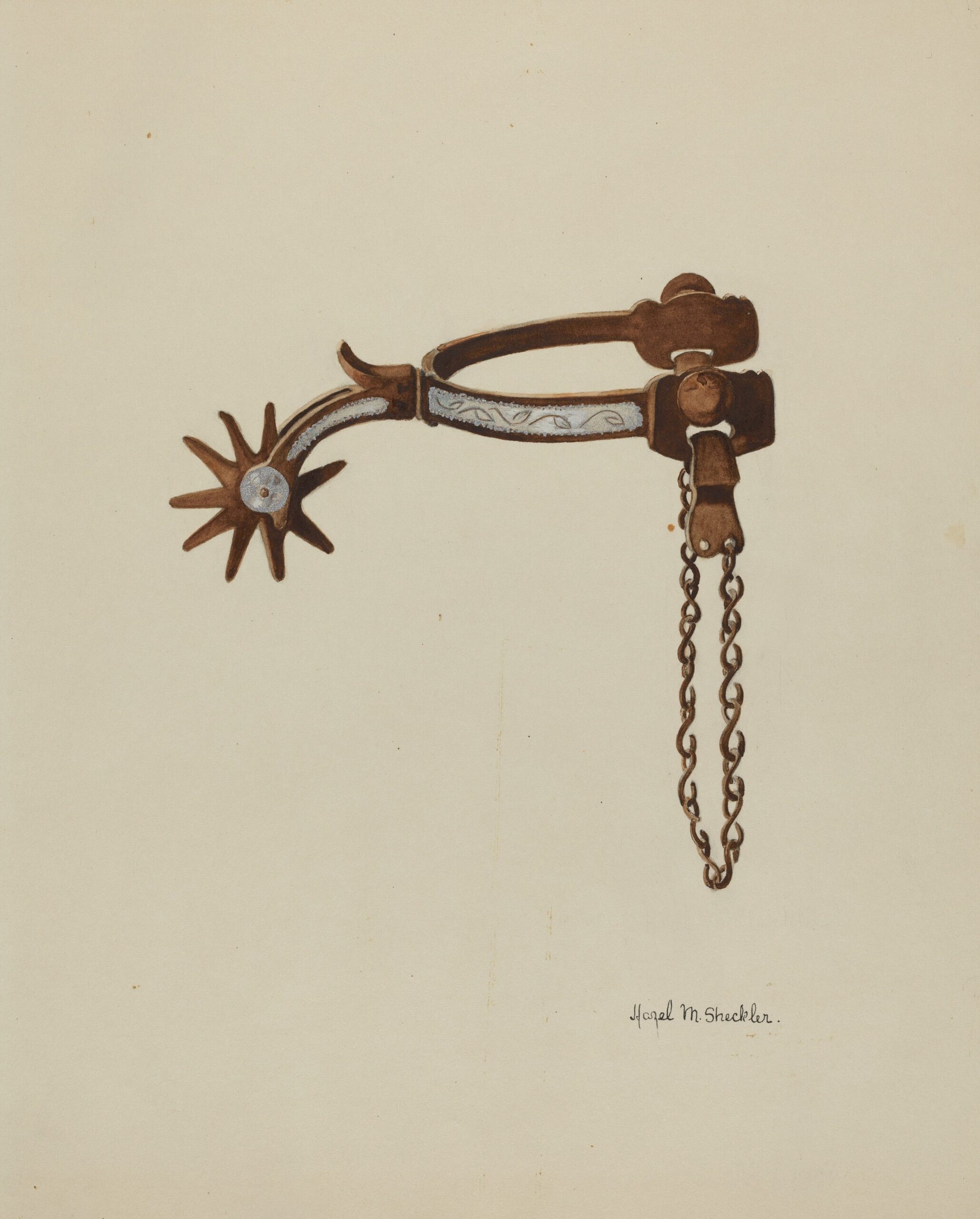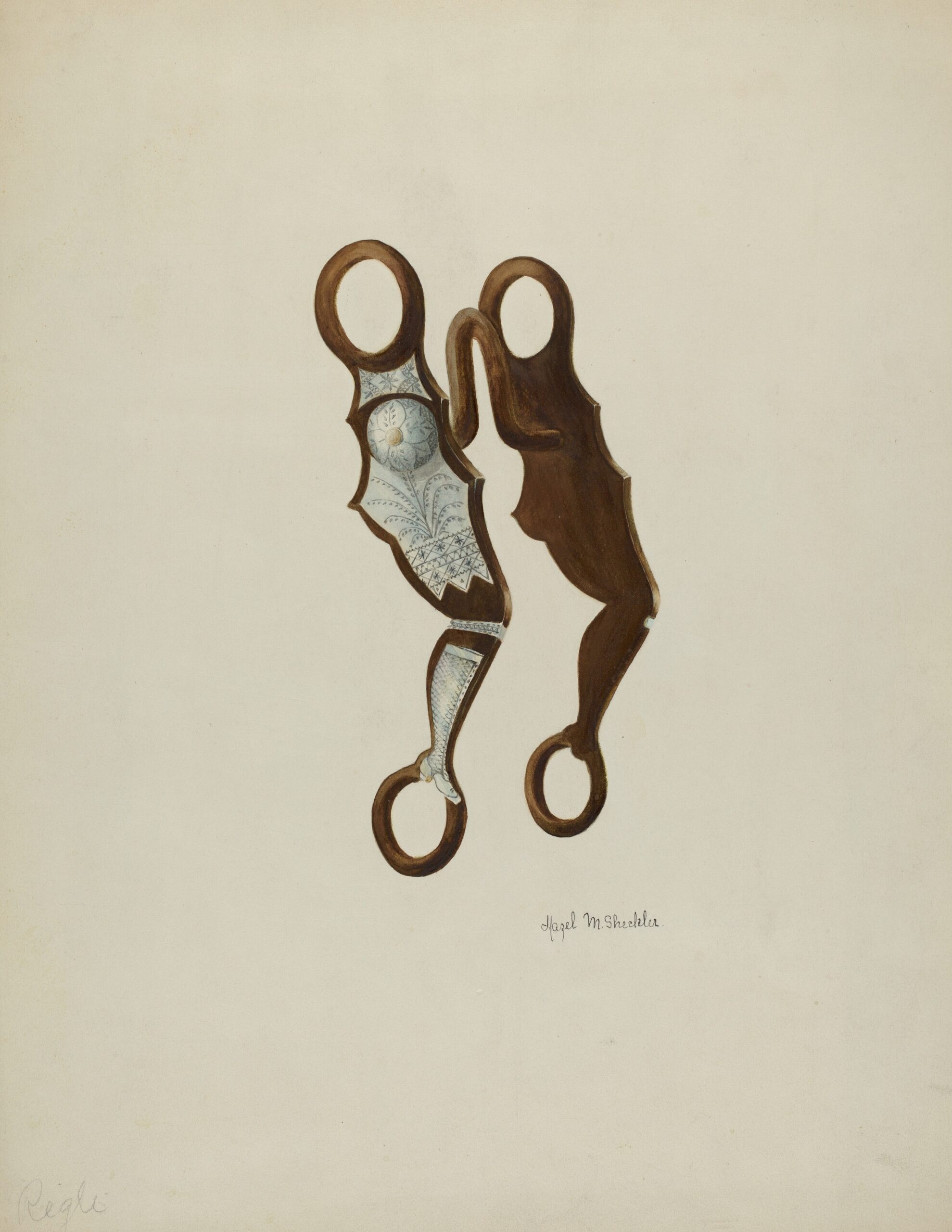Dulzura is isolated from the art world and Hazel did not court recognition, so the world has been happy to overlook her. She made lush prints and watercolors for the Federal Art Project’s Index of American Design, work now archived in the National Gallery of Art. She documented settler families and their working gear–bits and bridles–in photography and paints. She worked on an 18-foot tall WPA mural still on view in the San Diego County Administration building.