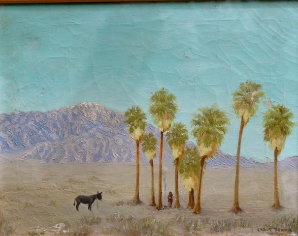 Cabot’s painting of Seven Palms oasis, though there are eight palms. Courtesy of Cabot’s Pueblo Museum.