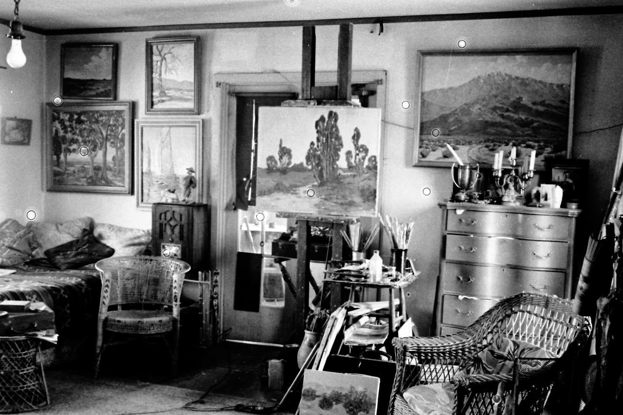 An important collection that documents a time, a place, and its people. Hopefully it will now be properly archived in conditions hospitable to its longterm preservation. Such a wonderful “new” photo of Agnes Pelton which includes what appears to be at least two of her landscape paintings; the scene on the left looks like Thomas Mountain in Idyllwild, and the picture on the right is probably PS or Cat City. Thank you Ann for yet another informative and fascinating glimpse of history.