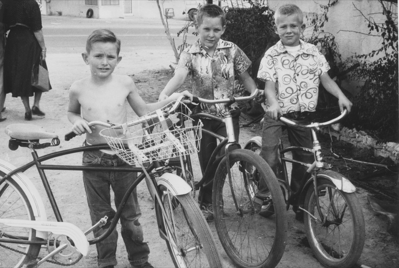 On a recent morning, John Emerson met with historical society members Margie St. Anthony and Denise Cross at the Cathedral City Library to look over a small portion of the collection. The people in the photos were not named on the labels, but it turns out Emerson knew most everyone. As he saw faces he recognized (some he had not seen for 60 years), he began calling out their names. Tossing aside files and grabbing new ones, he moved faster and faster–elated to be again in the company of his long-ago friends.