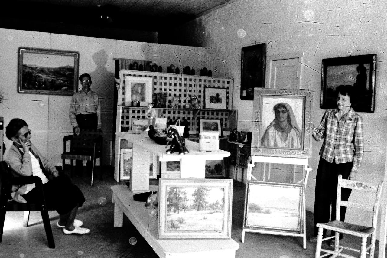 Now that Cathedral City–with its mythical Mayberry qualities–is coming into the national spotlight because of hometown hero Agnes Pelton, Ellis’ work is an MRI machine that lets us see deep into the lives of the artists. Thanks to Ellis, we can see inside Matille “Billie” Prigge Seaman’s studio. We see Agnes looking uncharacteristically relaxed and talking with neighbors at a forgotten art gallery. We see Billie’s argyle socks. We see Christina Lillian’s meticulous cactus gardens at her art colony called SvenSka.
