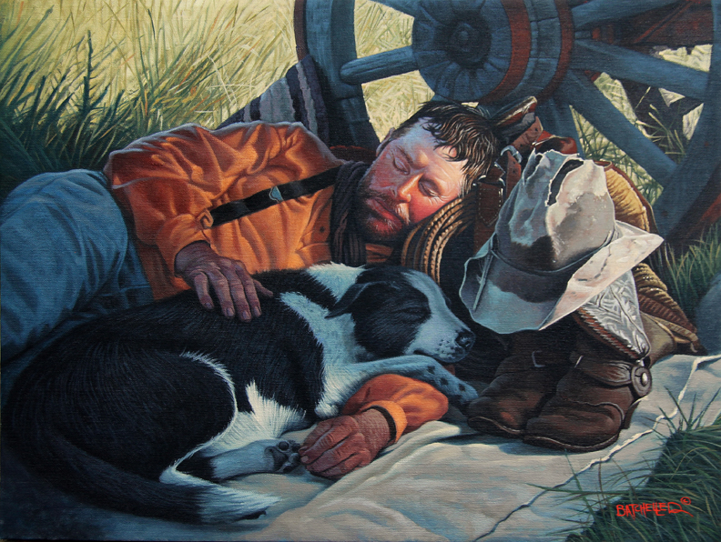 And, on June 1st and 2nd, 2013, the Banning Centennial festivities feature a Cowboy Art Show at the Gilman Historic Ranch and Wagon Museum. The Gilman Ranch (where Willie Boy launched his famous run) is worth the trip alone, but you also get to enjoy the work of Carolyne Hawley, a well-known equine and cowboy artist from Morongo Valley, and the Western realist painter Keith Batcheller. Luckily for us, Batcheller retired from the illustration business (he worked for Walt Disney Productions, Sea World, Warner Brothers and other clients) and has turned his focus to painting the story of the West.