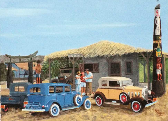 The Cathedral City Historical Society hosts the master of desert Americana, Ron Backer, at a luncheon Thursday, November 5, 2015. Backer, a transplant from South Dakota, zones in on a neighborhood and soon unearths stories even the locals don’t know; then he paints the tales so they are forever preserved. Art historian Marilyn Cooper will talk about Backer’s narrative approach, as guests enjoy a lunch by Cathedral City’s own Chef Hector. Come and meet Ron Backer and support the Cathedral City Historical Society.
