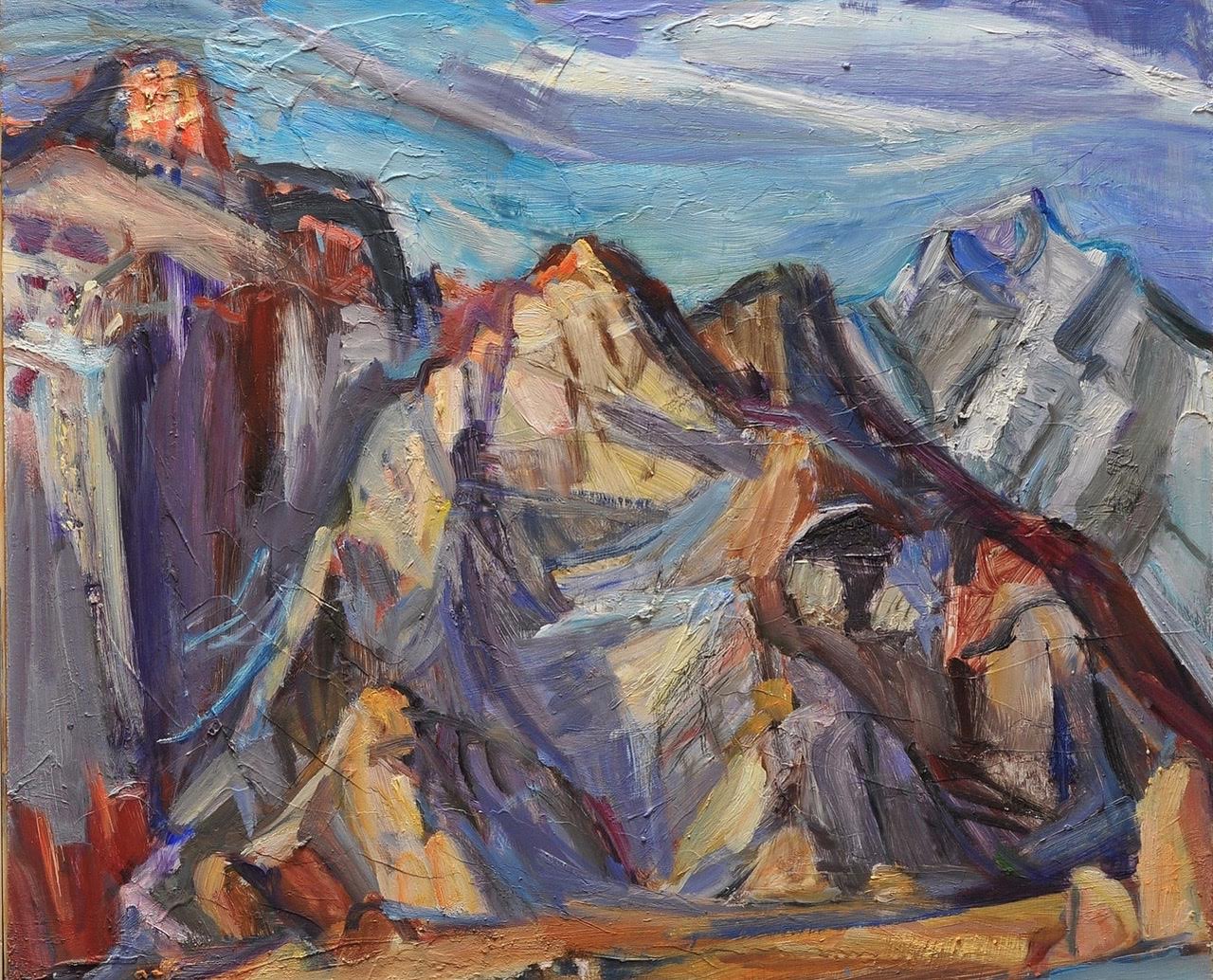 …Ms. Culp arrives in these expressive oils, charcoals and watercolors at a place of structural clarity and composure—while making palpable the rush she feels interacting with nature. Her pictures’ restless skies and stepped, sharply carved mountain peaks retain the vastness, monumentality and naturalism of their subjects. Yet ultimately she is painting not the landscape but the thrill of engagement.