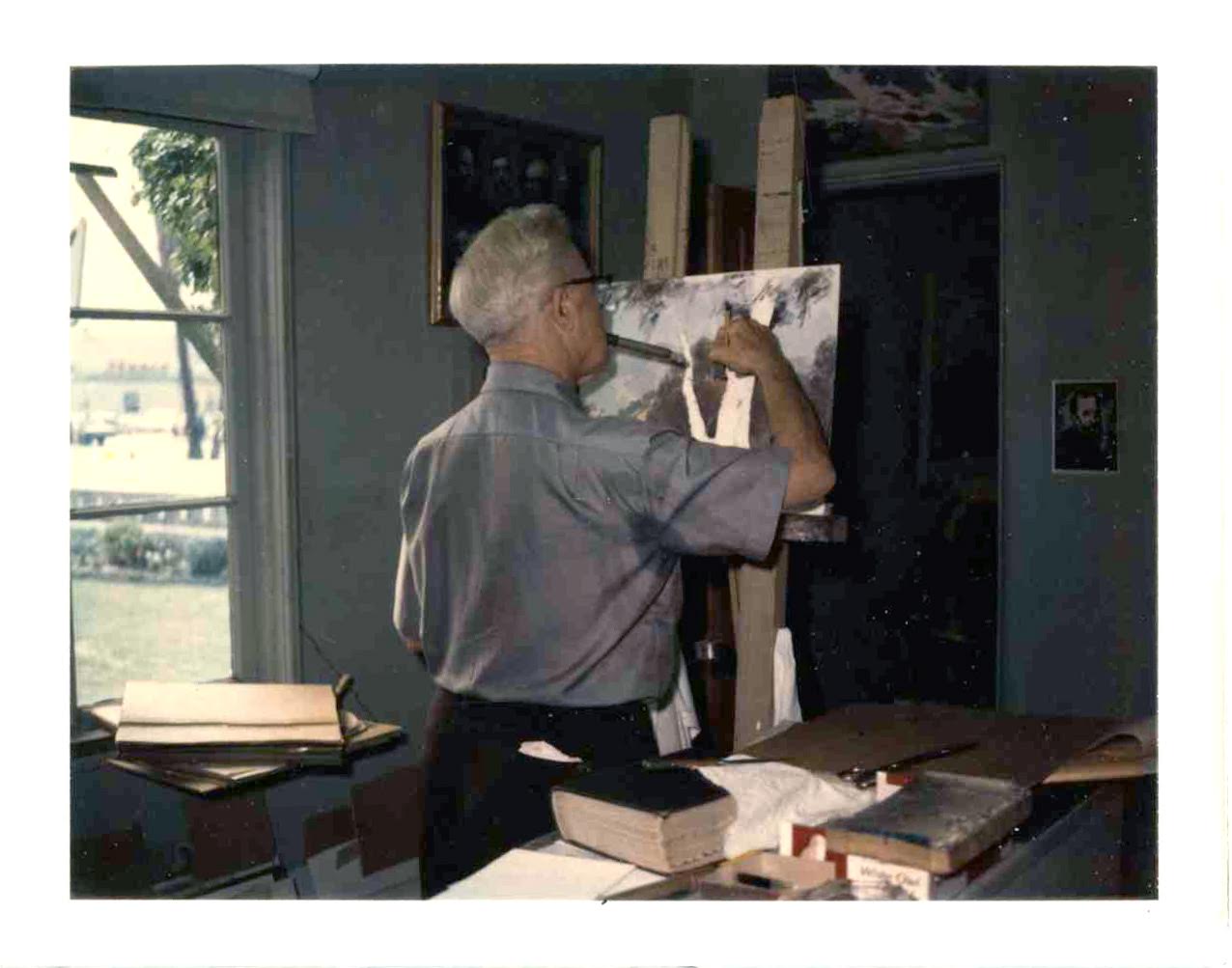 If any one had ever told me that I would give a lesson in painting to one of our Presidents of the U. S. I would have thought them plain nuts. The last time he was in, he watched me two hours and I explained. I was nervous at first, but he was so gracious, so I relaxed and went to town and give it all I had.