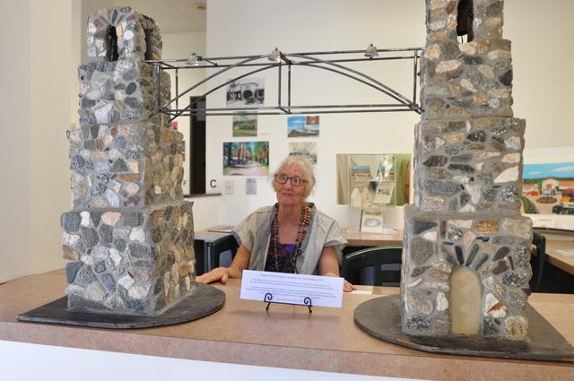 The hit of the Cathedral City historical exhibit at the City Hall gallery through February, 2017, is Margie St. Anthony’s replica of The Arch. Built in 1927, the granite arch stood at Cathedral Canyon Drive back when Highway 111 was just a narrow lane through open desert. Sometime after WWII, the Arch (it makes a cameo in an Agnes Pelton painting) was bulldozed in the middle of the night and people have been missing it ever since.