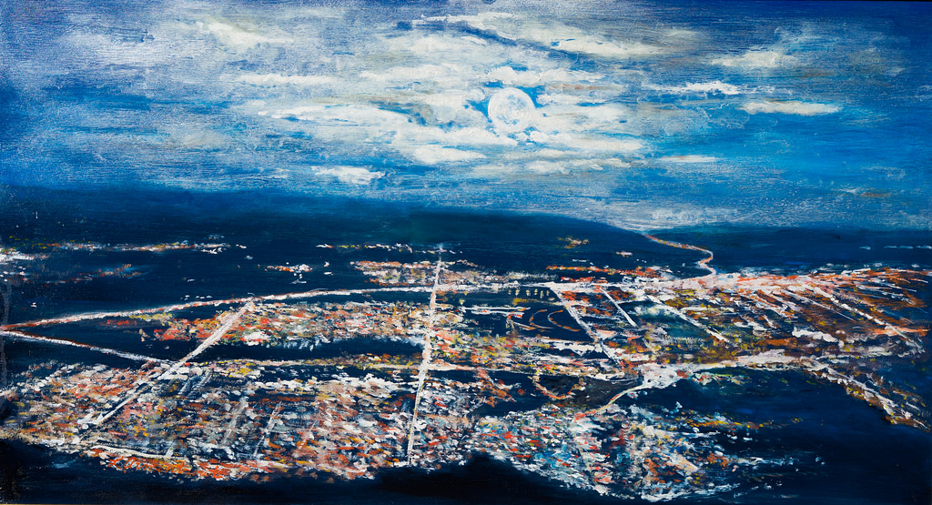 Lou Armentrout–a former Columbus, Ohio schoolteacher once profiled here for his collection of desert art–has been living with the work of Gordon Coutts, Fred Penney, Carl Eytel and others on his walls so long that he’s absorbed some of their chops. “I taught myself painting by collecting,” he says. The exposure to the desert greats has yielded a collection of mysterious night paintings, many from an elevated vantage. Nightscapes is on display at Brian Marki Fine Arts, on Arenas Road behind Lulu’s restaurant, through February, 2017.