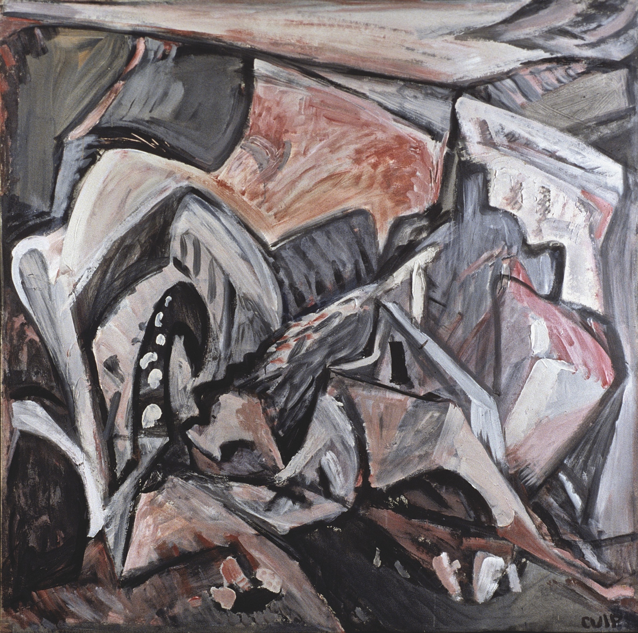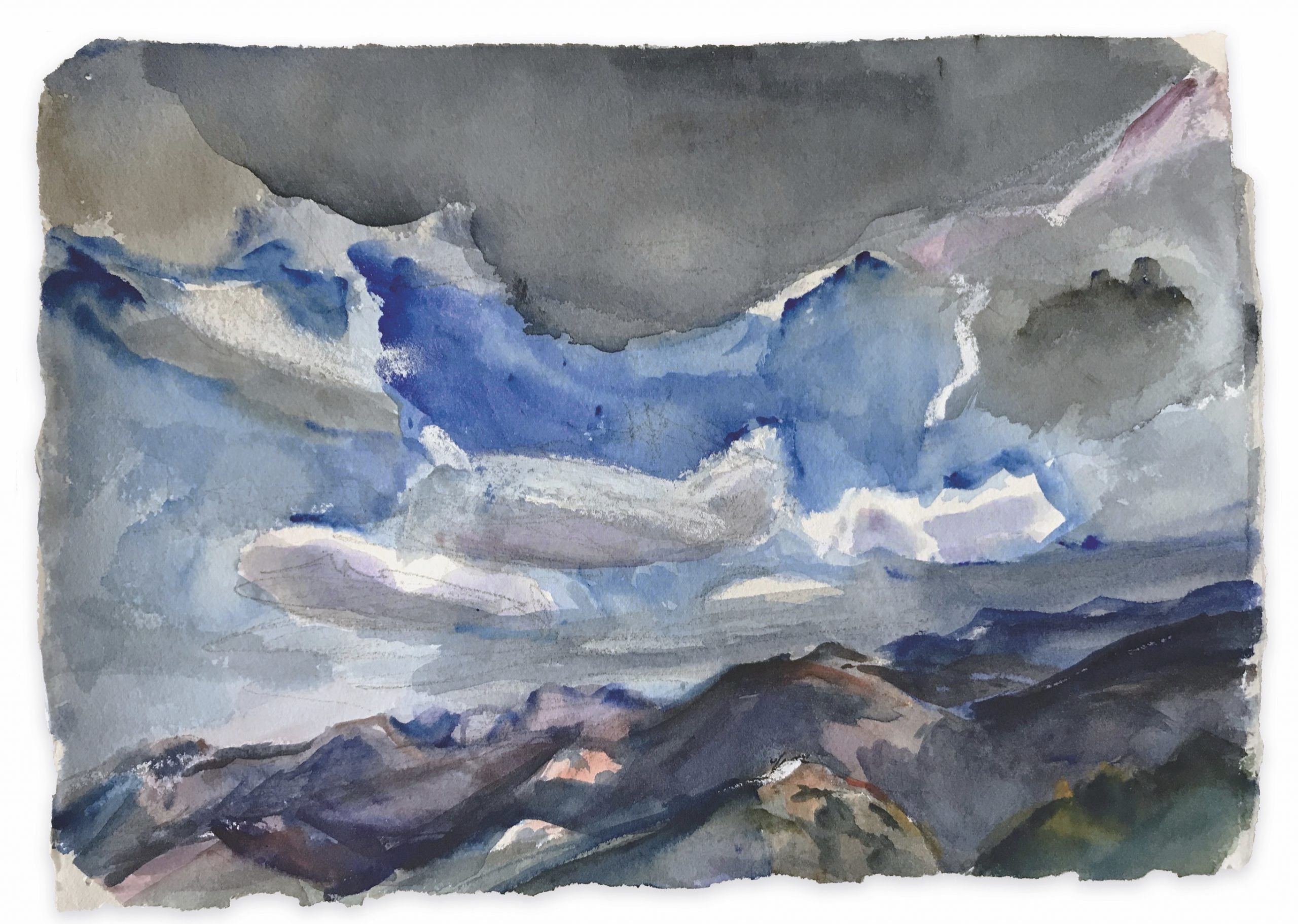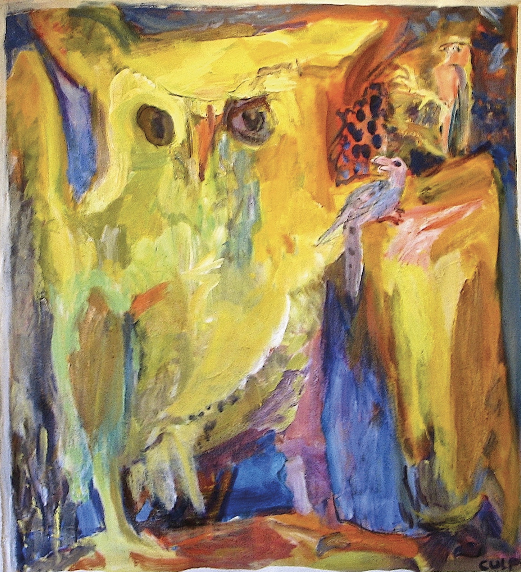 Culp was molded in the highly verbal and analytical New York art scene. She received a BFA at Washington University in St. Louis, then an MFA at Yale University Art School and became a regular at drawing sessions at the New York Studio School. Once she married New York painter and critic Louis Finkelstein, she spent time around a lot of heady Abstract Expressionist painters and high-flown art talk. After her husband died, she made the radical move to her off-grid studio on 60-acres and slipped into a realm beyond words. The paintings born in her aerie resist language, and retain all the bucking, crashing energy of the land and sky.