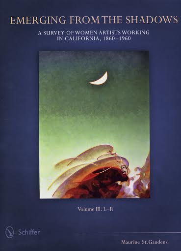 Emerging from the Shadows: A Survey of Women Artists Working in California, 1860-1960 introduces 320 mostly-overlooked or forgotten women artists and reanimates them and their work. (Bios of three desert artists are below.) Maurine was not content to render the women as footnotes. Through the generous layouts and a biographer’s empathy, she gives human dimensions to each one.
