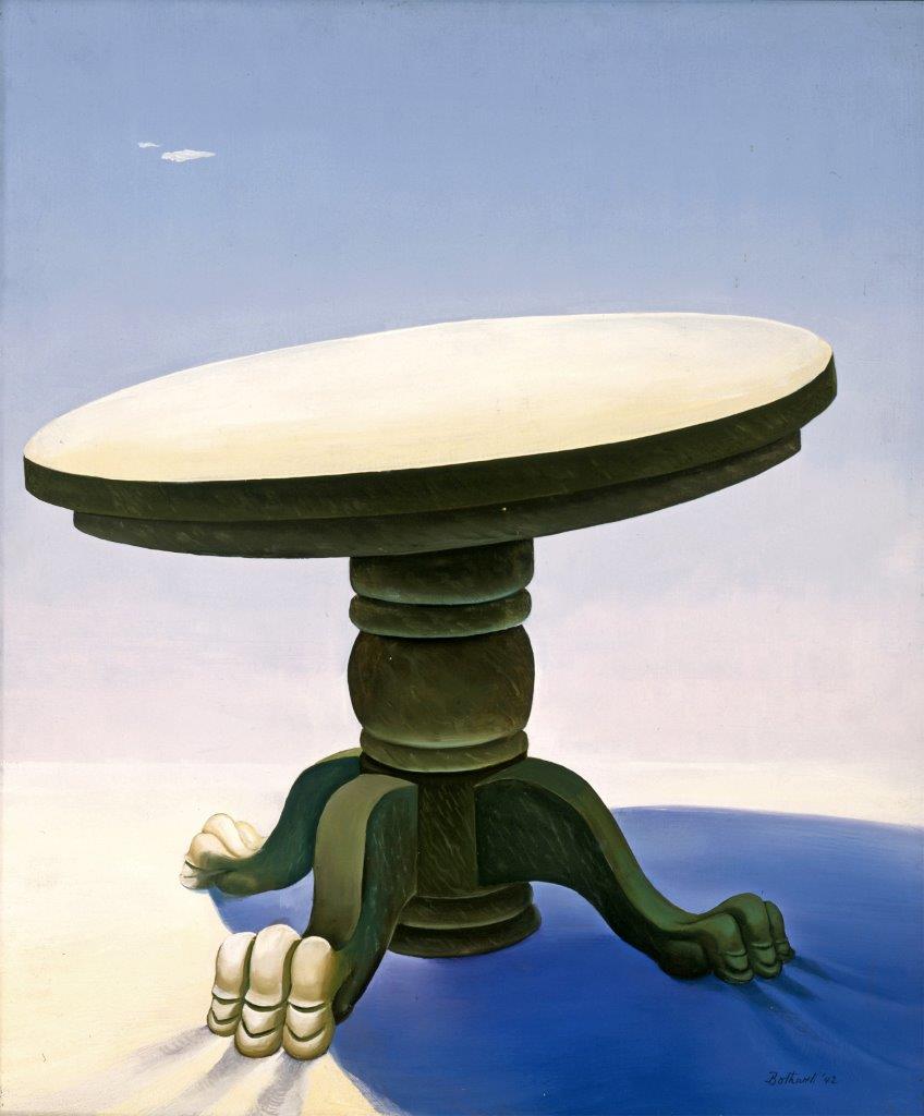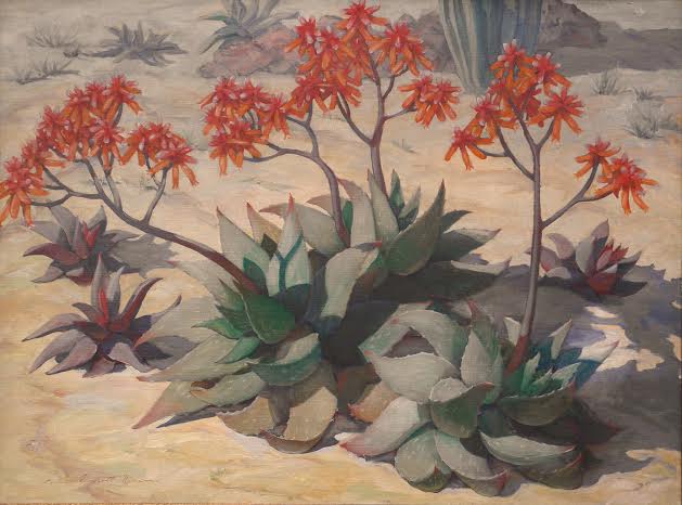 While women artists of the early 1900s were often disparaged as “Sunday painters”, the artists represented are hardly amateur or Victorian. Often, the work is so progressive that the word “modernism” pales. For instance Dorr Bothwell–who lived part-time in Joshua Tree (bio below)–painted futuristic dreamlands. Edna Stoddart, a descendant of Wyatt Earp, painted cubist landscapes full of fantastic birds, witches and cats.