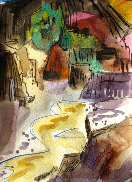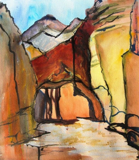 Teresa Rooney, Natural Bridge. The silence. The vast open space. The drama of light and shadow moving across the landscape. Capturing the feeling on canvas, documenting my adventures in a language that goes beyond words, that’s where I find pleasure.