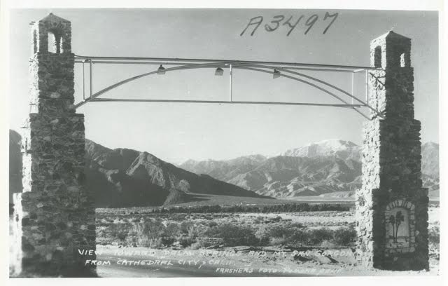 The landmark arch stood at the west entrance to Cathedral City, and appeared as a design in Agnes Pelton’s work. Images courtesy of the Cathedral City Historical Society.