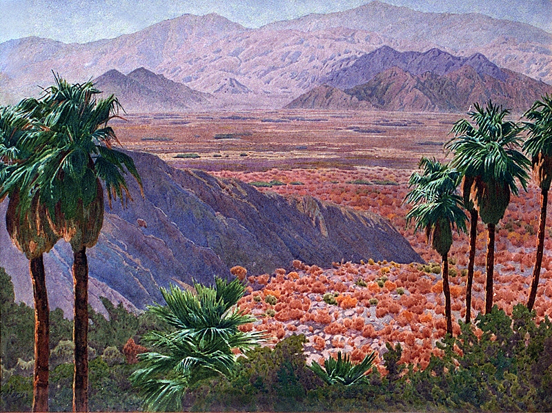 Swedish-American watercolor artist Gunnar Widforss (1879 – 1934) worked in the California desert around Palm Springs and in the Coachella Valley from 1922 through 1933.