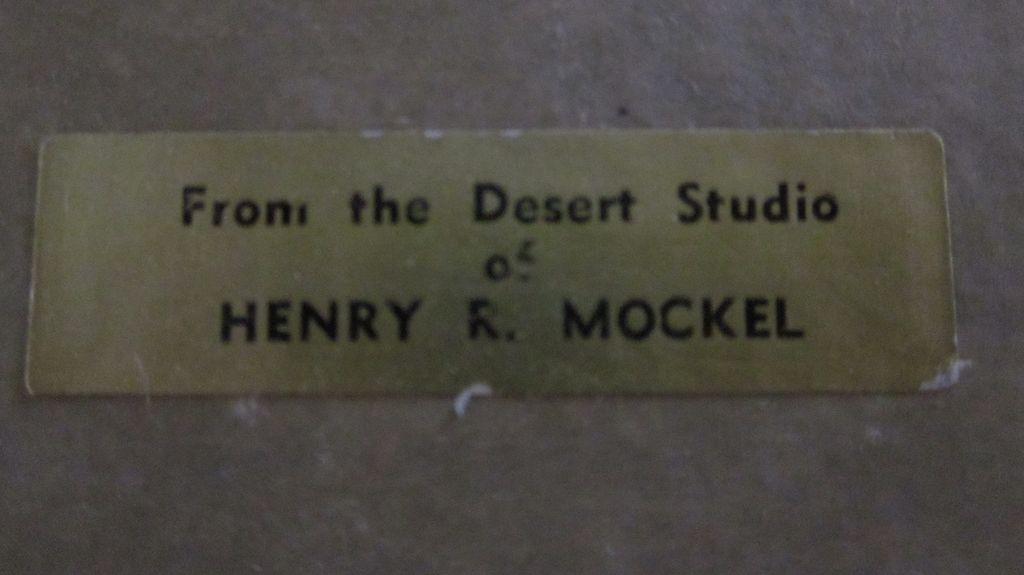 Years ago I obtained a mixed media piece with a mounted nameplate titled “The Pied Piper of the Desert by Henry R. Mockel”. Not long thereafter I contacted Rosemary who was unable to provide any information on the piece. I also have both of his books. I would greatly appreciate any info regarding this art.