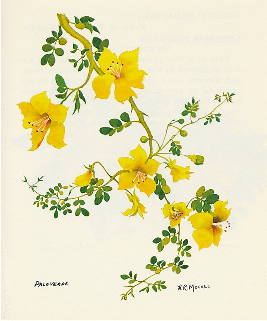 When I was a child visiting Anza Borrego with my parents, my folks always bought up the Mockel note cards where ever they could find them. My mother, an artist (albeit amateur) herself, appreciated the detail and vivid color in his botanical illustrations, which we’d use to identify desert flowers during nature hikes every spring. I have my own copy of Mockel’s desert flower notebook, and have been using his colorful notecards for correspondence since I was a young teenager. I hope my daughters continue the tradition.