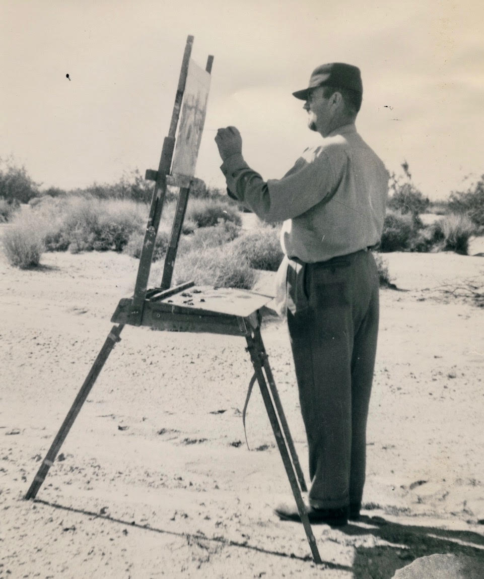 Carl Bray painting in the dunes behind his home, now the site of the Indian Wells Country Club. Indian Wells Historic Preservation Foundation.