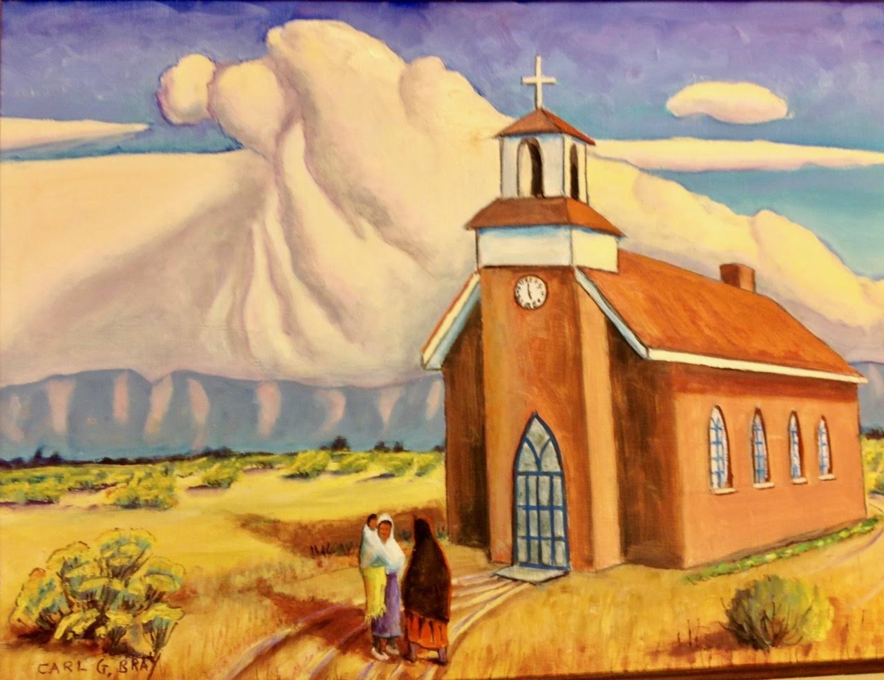 Rare paintings by Indian Wells artist Carl Bray were lost in the Santa Rosa fire in October, 2017, when the home of Bray’s daughter Sylvia Bray burned to the ground. “The loss of Dad’s paintings was probably the biggest loss for me,” Sylvia writes. “He had given us one of his old 1957 paintings for our wedding gift and I also had his only watercolor, a beautiful desert scene. I never saw another watercolor by him and found it by fluke in his studio one time.”