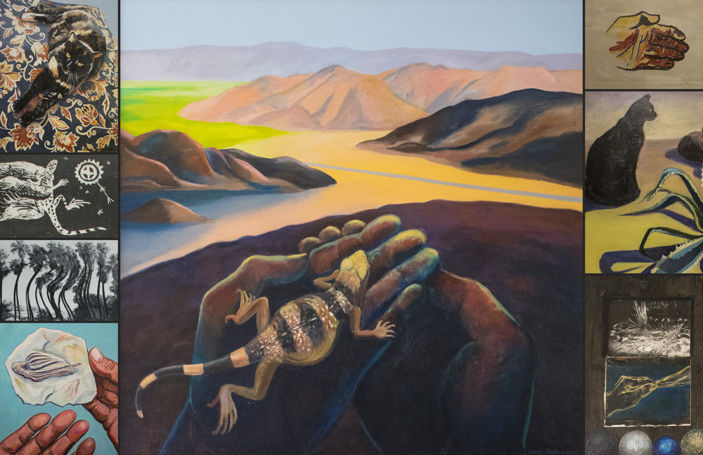 CREATE Center for the Arts in Palm Desert presents a memorial exhibit devoted to the work of Susan Smith Evans, who died in March, 2017. The exhibit, When Chuckwallas Dream, runs through November 17, 2017, with a closing reception Friday, November 17, 5-7 pm. As profiled recently on this website, Evans was one of the Valley’s most influential artists and teachers. Proceeds from sales of her paintings benefit the Susan Smith Evans Memorial Scholarship Fund.
