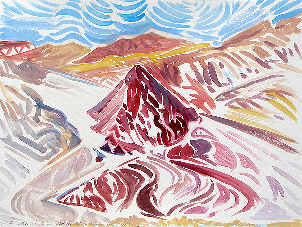 Transcendent artists such as Agnes Pelton aimed to capture the forces underlying desert mountains and dunes. One of the boldest artists working in the same vein today is Brooklyn-based Janet Morgan. Along with her artist-partner Gregory Frux, she has explored the California and Utah deserts as well as Patagonia, Peru, Antarctica, Turkey and other lands. She was a Death Valley National Park artist-in-residence in 2005, 2006 and 2008.