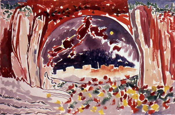 The quest for the “underlying energy source” runs through all of my work – paintings, books, stage sets, dance and teaching. Geology, history, mythology, religions, architecture, dance – it all mixes in to create a world view full of color and force.