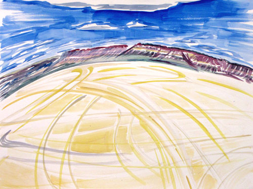 And that motion finds its way into my work. I have always painted from a kinesthetic, tactile and physical base. The spirit and movement animate me, and the force of things dictates my brush. After studying dance, my work gathered a greater perception of energy and movement – and in Death Valley the evidence of plate tectonics and weather systems and flash floods is an open book: the geology has no clothes, the earth is laid bare. There are truly transient things that change from hour to hour, day to day, and others that take thousands of years to move or wear down or build up. Then there is the sun and wind…
