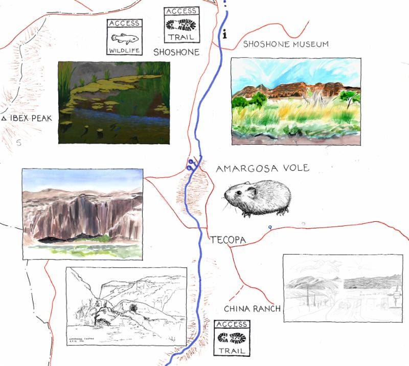 The map project is supported by the Amargosa Conservancy; a copy will be included in the collection of the American Mountaineering Museum in Golden, CO. Write to: info@artandadvantures.com