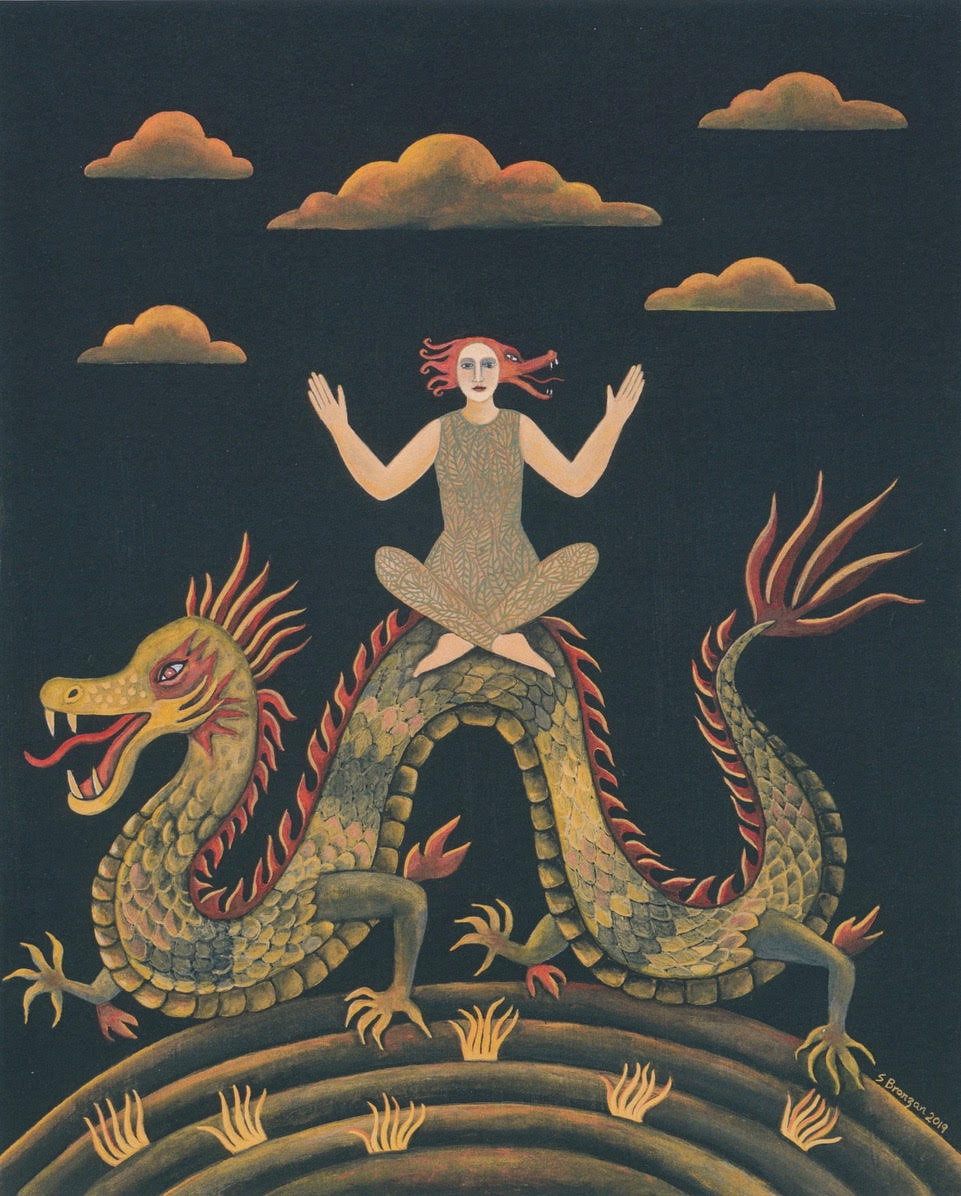 Bronzan specializes in peril and its antidotes in myth and folklore. Given her expertise, it’s as if the artist has been rehearsing for this moment–the pandemic crisis–all of her life.