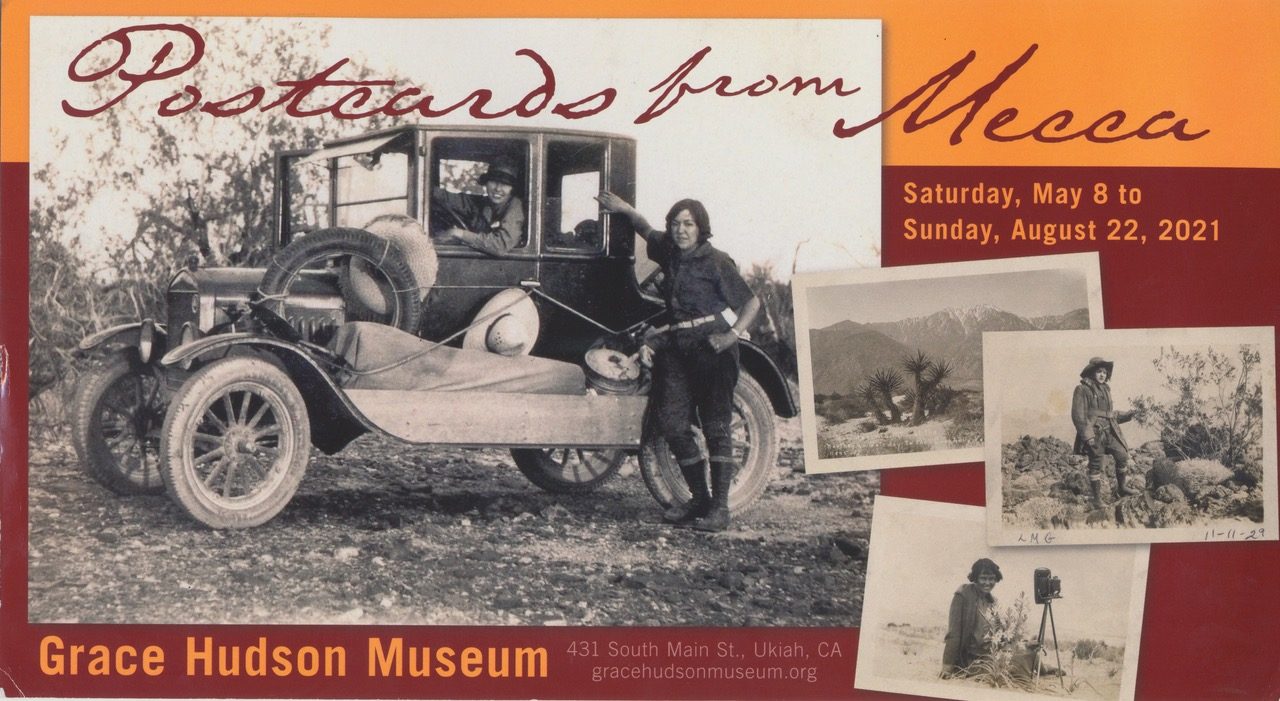 The book that Warner Graves and I edited—Postcards from Mecca—is featured in an exhibition at the Grace Carpenter Hudson Museum in Ukiah starting in May, 2021. The photographs on display tell the story of Lula Mae Graves and Susie Keef Smith, postcard photographers based out of the Mecca post office. Thanks to the nonprofit Exhibit Envoy, Susie and Lula will be traveling to several small California museums. The Grace Hudson location is a good fit for the duo, as Grace Hudson was herself an early painter of the Pomo people of Northern California. Augmenting the desert photos are early photographs of the Mendocino country by Hudson’s father, A.O. Carpenter.