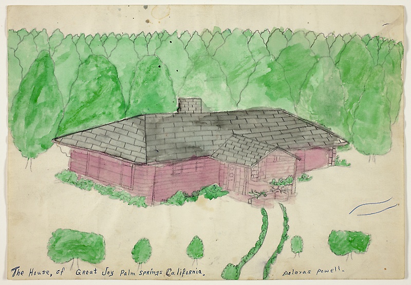 Joseph Yoakum is not a desert artist in the usual sense but the self-taught painter did travel here in his dreams. The House, of Great Joy Palm Springs (with its idiosyncratic comma) shows a suburban home in a lush setting that looks nothing like Palm Springs. Then there’s Yoakum’s Mojava Brook and a strange and inspired rendition of the Imperial Valley. For all the odd spelling and alien flora we can trust Yoakum’s dream topography. The outsider artist became famous for imagining landscapes of places he had never seen in person.