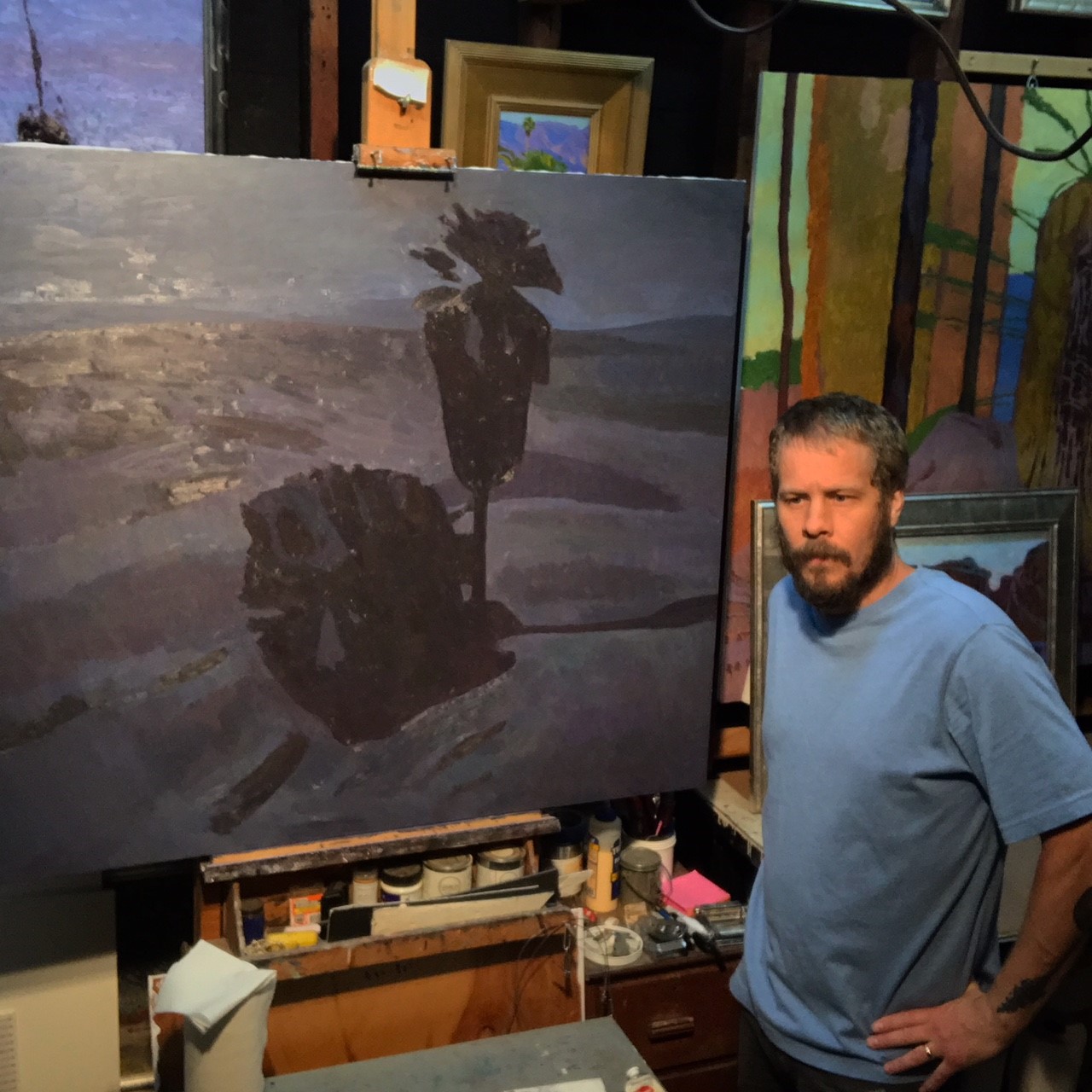 The painter’s talents run to literature as well as art. Not surprising, then, that he has written a poem to accompany the nocturne. Eric’s words give you a feeling for what it would be like to paint “on this side of midnight, in the desert by a seep.” No one has written about desert colors so attentively since, perhaps, the venerable J. Smeaton Chase.