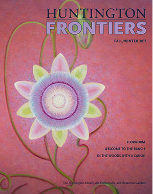 The former Cathedral City resident also recently scored the cover of the Huntington Library’s magazine Frontiers. The museum’s recently acquired Pelton painting Passion Flower graces the cover. An accompanying article by James Glisson discusses the work of Henrietta Shore, Agnes Pelton and Helen Lundeberg–three modernists who all engaged with the California desert.