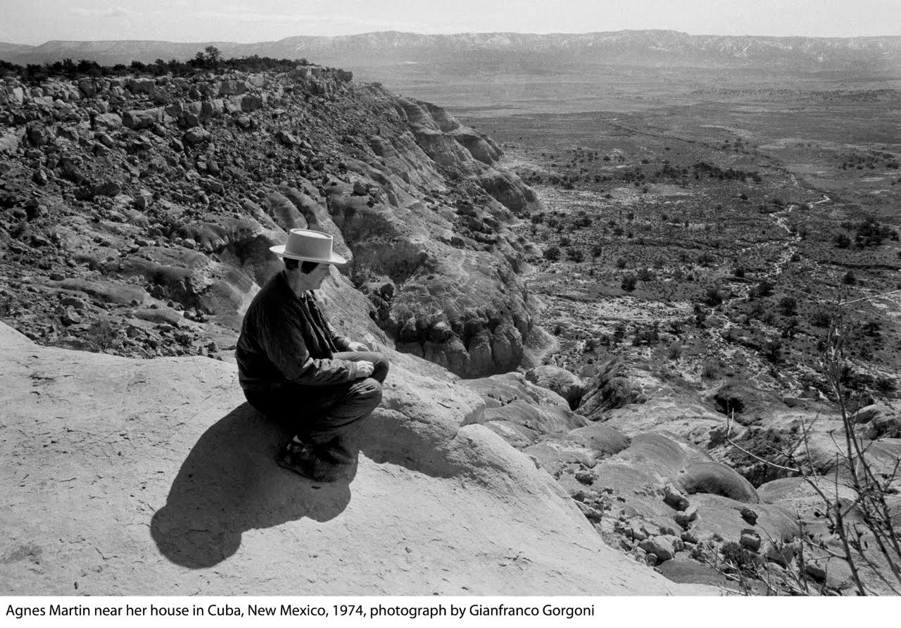 Two major retrospectives of women who drew inspiration from the desert are on view currently in Southern California. Agnes Martin came to New Mexico in the late 1960s and lived alone in an adobe hut on a mesa. The Los Angeles County Museum of Art is now displaying the first large-scale retrospective of her minimalist work, April 24-Sept 11, 2016.