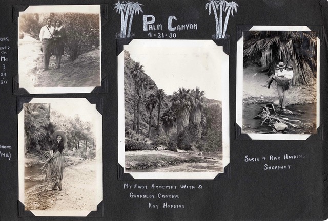 And what if the old photos and letters are not in a dumpster but stashed under your own bed? Resist the urge to purge. Warner Graves III, an artist recently relocated from the Bay Area to Cathedral City, held onto his grandmother’s substantial bundle of papers and photos and as a result we have the images you see on this page. As a preview of the La Quinta exhibit and the forthcoming book, here are never-before-seen original album pages from Lula Mae Graves’ scrapbook.