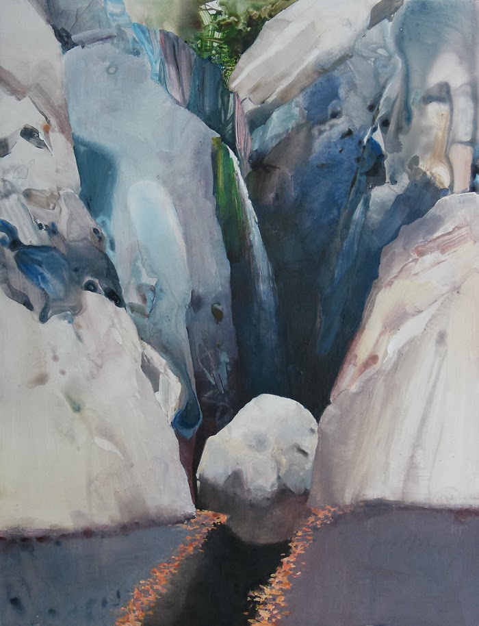 “The twisting sycamore trees along the creek were ghostly white with last autumn’s red leaves still attached and they were spectacular! Now California is in a serious drought so when we reached the falls, the flow was more of a trickle which gave emphasis to the fragility of this landscape and made it a tender scene. It also allowed for close observation of the cliffs which were sculpted and smooth from centuries of runoff. It was cool, dark, quiet and breathtakingly beautiful. Western Oregon is full of amazing waterfalls, I love them. This was altogether different, this was like a temple.”