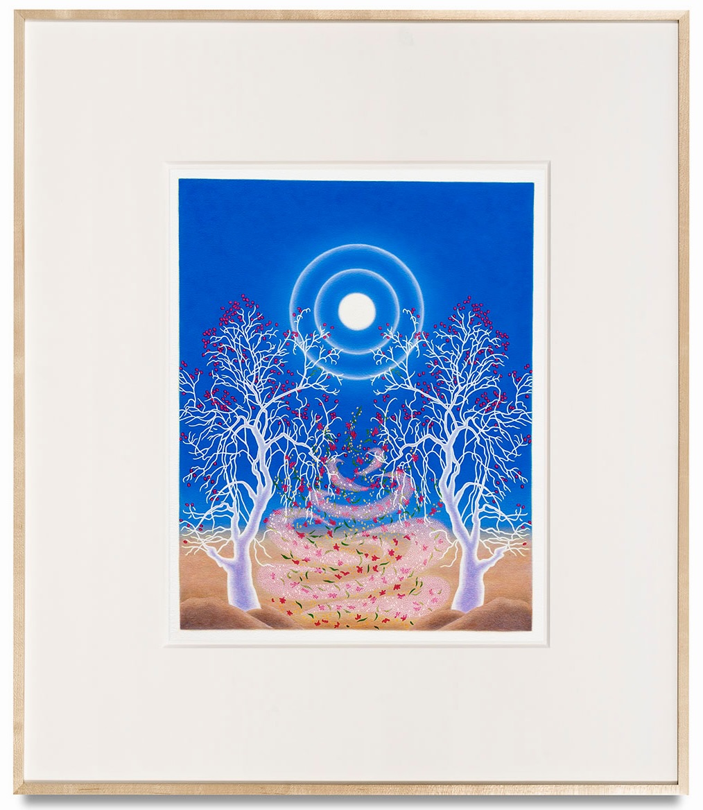 She represents the desert well, indeed. LA Times art critic Christopher Knight called her Biennial paintings “a sacred spectacle of almost hallucinatory beauty.”
