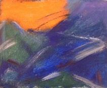 The artist was Steve Hudson. Jayne Davis, a retired teacher living in Idyllwild, told me her partner Steve–a third generation California landscape painter–had died unexpectedly of a heart attack a year earlier. Just before his death he’d been painting feverishly late at night to Bach and Brahms.