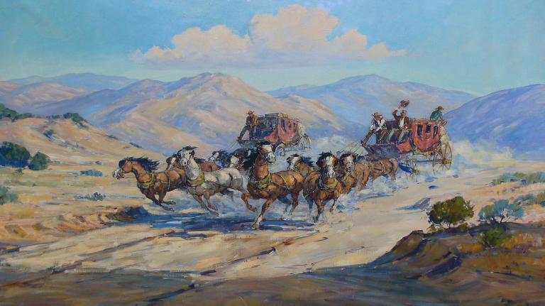 Editor’s note: No one captures the action-adventure ethos of the early desert artists better than Marjorie Reed, best known for her paintings of the Butterfield Overland Stage. You can learn more about Reed from Gary Fillmore, author of All Aboard: The Life and Work of Marjorie Reed, at his talk in Borrego Springs February 14, 2020. (Info below.)
